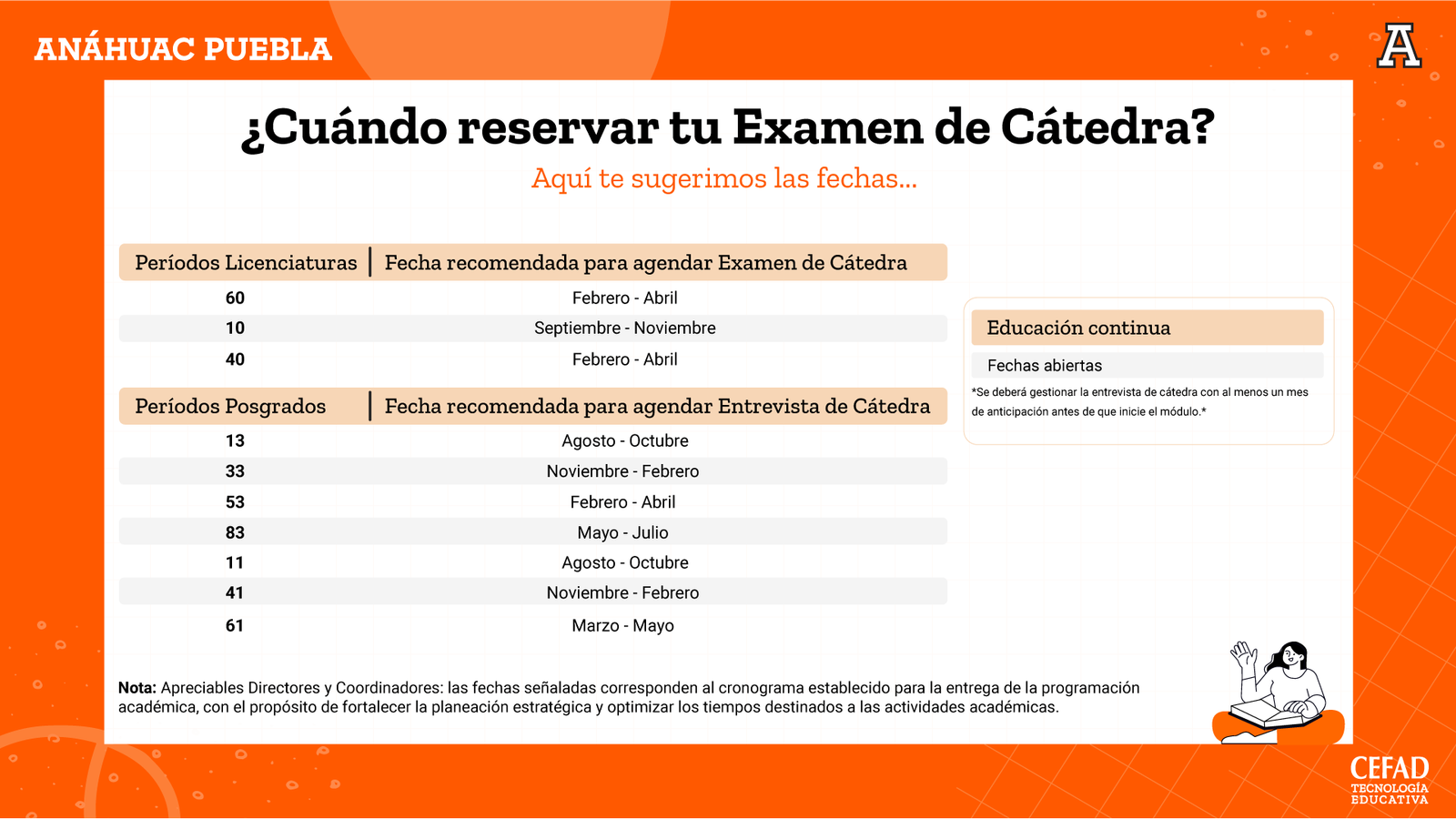 Examen / entrevista de cátedra Proceso de contratación docente Más información ¿Qué debo considerar? Para mi examen / entrevista de cátedra Más información Periodos examen / entrevista de cátedra Más información Examen / entrevista de cátedra Agenda aquí Regresar